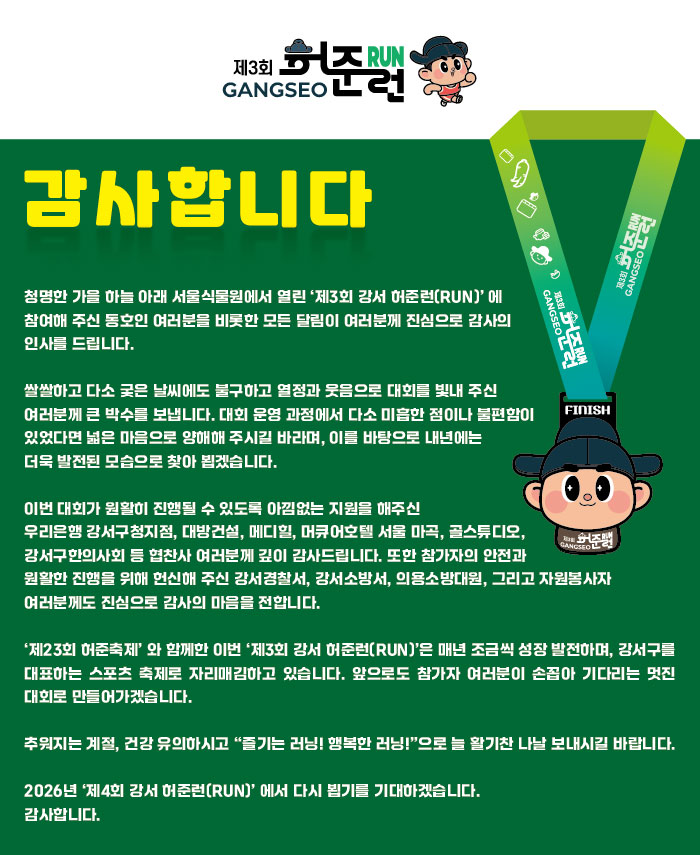 "아름다운 강서의 자연을 만끽하는 달리기 축제"강서허준런(RUN)